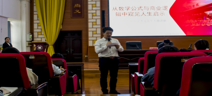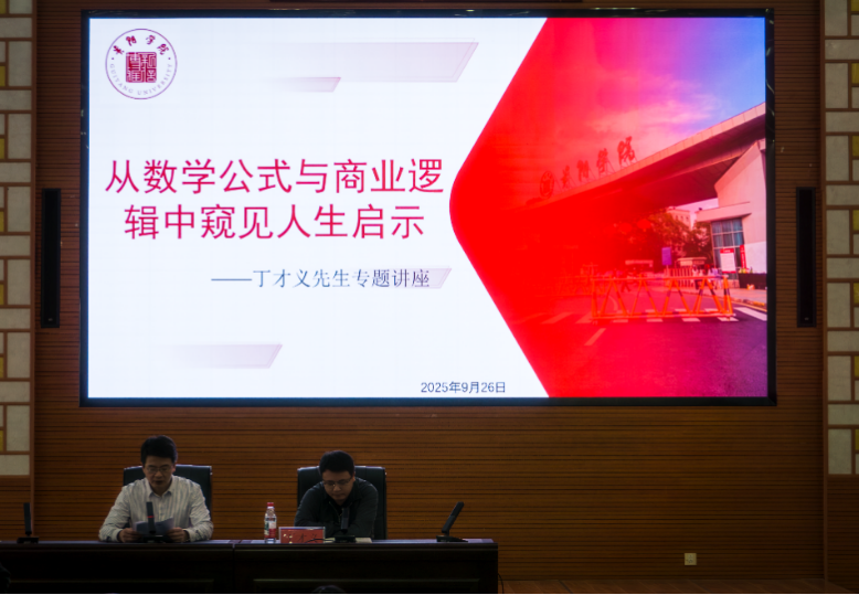 为进一步拓宽学生行业视野、提升综合素养,搭建理论学习与企业实践的衔接桥梁,9月26日下午2时30分,贵阳学院经济管理学院在三教四楼道德讲堂举办《从数学公式与商业逻辑中窥见人生启示》专题讲座。讲座特邀行业资深专家丁才义先生主讲,贵阳学院党委书记黄营亲临现场指导,经济管理学院、法学院、计算机科学学院等学院学生及兴趣爱好者积极参与,现场氛围庄重热烈。